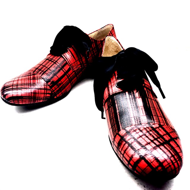 2017/03/25 Category : BABACOOLⅡ Ba2:こだわりのシューズ Neb aaran doの新作シューズが入荷致しました。鏡の国の靴¥28,000+taxピッグスキンを使用。プリントは職人のハンドメイドペイントによるチェック&ストライプ模様。柔らかな質感と、手作業による柄のギャップが楽しめる一足です。サイズ展開は、S.M.L店頭には、ストライプ (M.L)チェック(L)がございます。在庫の確認や、ご注文も出来ますのでお気軽にお声掛け下さいませ。世界のはての靴¥24,500+taxこちらは、Neb aaran do初のオリジナルシューズ。ツヤツヤな質感の本革エナメルの赤、マットでシックな本革スムースの黒。日本の職人による手作りのシューズです。店頭には、赤 (23.5cm.24cm)黒(24cm)がございます。こちらも在庫の確認や、ご注文も出来ますのでお気軽にお声掛け下さいませ。そして、当店の定番シューズHARUTAも入荷致しました♪長年に渡りたくさんのお客様にご愛用頂いているワンストラップシューズ。クラシックモデルの牛皮製。Baba cool2別注品です!¥12,000+tax私が、初めてHARUTAを買ったのが4年前。履きやすく、どんなコーデにも相性が良く、愛用しております。スタッフになった今、そろそろ二足目に突入?まだ履ける?HARUTAは、お手入れも楽しみの一環なんですよ♪履いた瞬間、魔法がかかるような特別な一足はいかがですか?