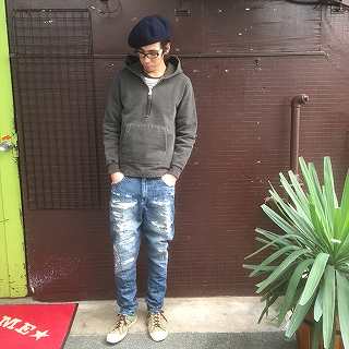 2017/02/01 Category : BABACOOL BABACOOL店、春の訪れトップス&パンツはこれだ!! byナベ 毎度お騒がせしております、ナベです!!まだまだ寒暖差が激しい日が続いておりますが、そろそろウール物やヘビーアウターしまって、春物を楽しみたいところ。とはいえ寒さがこたえる…ということで、"寒い春"にピッタリ、春先も大活躍、コレ持っていれば間違いない!!なアイテム&コーディネートをご紹介!! またか!!というくらい猛プッシュのハーフZIP、圧倒的な防寒性と後染めコットンの風合いは、まさに"寒い春"が本番!!わたくしブラックを購入(。・ ω<)ゞ着れば分かる、この使い勝手!!¥12,800+TAXSIZE-M,L ハーフZIPパーカーと同じくコットンフリースを使用した、ロールネックプルオーバー。こちらもやはり防寒性、そして見た目にもほっこり、首元をガードするロールネックが最高です…♪¥9,500+TAXSIZE-M,L秋口より好評のビッグスウェットですが、8分の袖や、ゆったりとした袖のシルエットは春仕様。シャツやロンTをレイヤードして♪女性の方にも人気です◎¥10,500+TAXSIZE-M,L パンツ編。ナベイチオシはやはり3Dサルエル!!立体裁断、強いテーパードによる独特の形状は、ジャンルや体型、男女問わずミラクルフィット。試着必須!!ワンウォッシュ ¥9,200+TAXUSED ¥11,800+TAXクラッシュリペア ¥17,800+TAXSIZE-S,M,L 忘れちゃならないベンダーリブパンツ。季節問わず好評ですが、このデザインや履き心地を堪能するなら春!!隠しポケットなど細やかなディティールが遊び心満載♪ワンウォッシュ ¥16,000+TAXUSED ¥18,000+TAXSIZE-30,32,34 最近ジワジワと勢力をあげているのはGO WESTテーパードフィットジーンズ。ストレッチ入りながら岡山メイドの高級感のある生地感。セルビッチ仕様もニクい。絶妙なテーパードシルエットで抜群のフィット感と履き心地…。僕はインディゴタイプを一年程愛用しているのですが、色落ちも美しいです!!¥16,000+TAXSIZE-28,30,32,34さてさて、これらのアイテムを組み合わせてみましょう。ハーフZIPパーカー(ブラック)×3Dサルエル(クラッシュリペア)ベレーやボーダーロンTで、ROCKな気分。ロールネック(グレー)×ベンダーリブ(ワンウォッシュ)ほっこり系デザイン。女性の方にも!!ビッグスウェット(ナチュラル)×テーパードフィットジーンズ(ブラック)ビッグ×タイトのデザイン系王道シルエット◎チェックシャツを衿&袖口チラ見せ♪どうでしょう?面白いのがこれらのアイテム、それぞれに相性が良いコト。例えばハーフZIPにベンダーリブ、ビッグスウェットに3Dサルエル、ロールネックにテーパードフィットジーンズ等々…。さらに言えば、色やサイズ選びによって無限の組み合わせが!!ムムム…悩みますな。とにかく色々試着しまくって、コレだ!!という組み合わせを見つけましょう♪お手持ちの小物や羽織りと組み合わせながら考えるのも楽しいですね!!