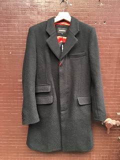 2016/11/17 Category : お知らせ NEVERTRUSTから待望のクロンビーコート入荷!! NEVERTRUSTからクロンビーコートが入荷しました!NEVERTRUSTでは定番アイテムですが今年は使いやすい黒が復活!そして生地もリニューアル、今年は高級感溢れる、毛足が長く暖かいダイアゴナルを使用!いつ入るの?との声を沢山頂いていた、皆さん待望のアイテムです☆SIZE-2(M),3(L)¥39000+TAX→通販はこちらをクリック 裏地は色気のあるイングランド・レッド・ツイル。着用イメージはこんな感じです♪ 伝統的な英国紳士のウールコートですが、スキンズ、パンクスをも魅了してやまないロング丈コート。ウエストの切り込みでシャープな美シルエットに。それだけでなく型崩れをも防いでくれます。そして着用写真でもあるように、このようなコートはマフラーと相性がとても良いですよね♪是非合わせてご覧下さい! 防寒アイテムも気を抜かず、冬を楽しみましょう☆大内本舖通販サイトはこちら