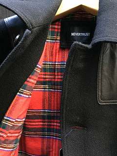 2016/10/29 Category : お知らせ NEVERTRUSTからドンキージャケット入荷♪ NEVERTRUSTから大好評ドンキージャケットが今年もやって参りました!! ¥42000+TAX→通販はこちら定番ブラックはリニューアルされ、なんと肩ヨークが本革に!!長く付き合えますね♪裏地は皆さん大好きな赤タータンです!素材はホームスパン調の織りのウールメルトンを使用していて、高級感溢れています!!着用イメージはこんな感じ! 地厚で暖かいながらも、ネバトラ安定のタイト美シルエット!!ヒミツはウエストの切り込みに有り!ドンキー特有のどっしり感がないのが、定番アイテムながらも新鮮で、ドンキーのそこが苦手だった方にも挑戦しやすいかと☆ あとひとつは肩ヨークが共地の、黒に近いネイビー!裏地のブルータータンがこれまたずるい・・・¥37000+TAX→通販はこちら着用イメージはこんな感じ! 腰まである着丈が、寒い冬にありがたい!UK好きが好む細身美シルエット、長く付き合える上質さ、見た目の高級感・かっこよさ、暖かさ、もう全てが揃っています!!!(>_<)アウターは決して安く買えるものではないですから、かっこよくて機能性もある、特別な一枚を選びたいですよね☆是非、ご試着してみてください!!この他の商品も通販を行っておりますので遠方の方もご利用ください♪→大内本舖通販サイト