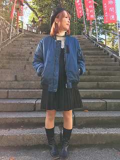 2016/11/01 Category : お知らせ Babacool2店 EFFECTEN アナーキーMA-1!! Babacool2店にEFFECTENから新作が入荷致しました♪ まずはこちら!!アナーキーMA-1 ¥28000+TAXアナーキーシャツのデザインをMA-1に落とし込んだアイテム☆アナーキーシャツとは70年代、イギリスを代表するパンクバンド「SEXPISTOLS」の衣装として作られたもので、パッチやスローガンも、デビュー曲「ANARCHY IN THE UK」の歌詞の内容とリンクさせた、数あるパンクアイテムの中でも最高傑作!!そんなアナーキーシャツを今流行のMA-1とMIXさせた、他にはない、リヴァイヴァルミクスチャーアイテム♪ そしてなんとリバーシブルで使えちゃいます!気分によって使い分けることができますね☆中綿もしっかり入っていて防寒性もバッチリ!かなり寒くなってきましたから、そろそろ厚手のアウターを手に入れたいですねヽ(;▽;)ノカラーはブルー、ブラックの2色展開です! 今回まりさんに着用していただいたベレー帽はLiquid店取扱い、666のseditionariesプリントベレー帽♪¥8800+TAXこちらも合わせてチェックしてみてください!全店アウターなどイカした冬物がどんどん入ってきているので、是非遊びにきてくださいね♪スタッフ一同お待ちしておりますo(^▽^)o