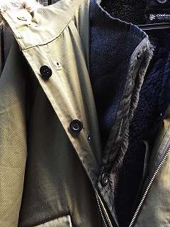 2016/11/05 Category : BABACOOLⅡ BAⅡMENS : イカしたメルトンアウター 早速この冬のハイライト!!AS SUPER SONICより、ナイスなメルトンアウターをご紹介!!ナポレオン ショートコート¥19,800+TAXsize_FREE!トップまでビタっと締まるダブルのメタルボタンが印象的なナポレオンタイプのショートコート!!さらにボタンダウンによるスタンドカラーがAS SUPER SONICらしい、特徴あるデザイン。ボタンを外して襟をねかせればセーラーカラーの様になります(お試しあれ!)薄手のメルトン生地を使用する事でジャケット的にも使えるうえ、アームに絶妙ゆとりを持たせることでニット等、厚手のインナーで重ね着してもごわつきなくスッキリとした印象で着こなせます◎今一度言います…カッコイイ!!!!このデザイン、ビビッと来る方も多いのでは!?ミリタリー ショートコート¥19,800+TAXsize_M/Lスナップボタンとジップのダブルフロント、フラップ付きポケット、フードや袖口のステッチワーク等、ミリタリーディティールを取り入れたショートコート。シンプルゆえ、使い勝手バツグン。BAⅡのデザイン物でも、LQのロックアイテムでも、BAやHTのアメカジ、ワークアイテムでも合わせられる万能選手◎オリジナリティを求めるなら、バッジやワッペンでカスタムしても面白いと思います♪オリーブとネイビーの色合いも絶妙!!ともに2万円代前半という、アウターとしてはリーズナブルな価格も魅力的。シュンやナカジマさんにも’’コレはズルい!!’’と言わしめた一着(笑)アウターでお悩みの方はぜひ一度お試しを!!