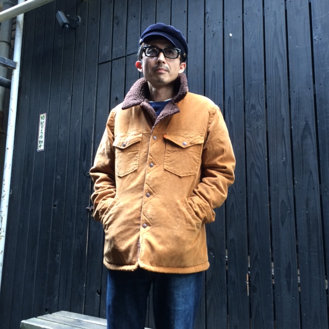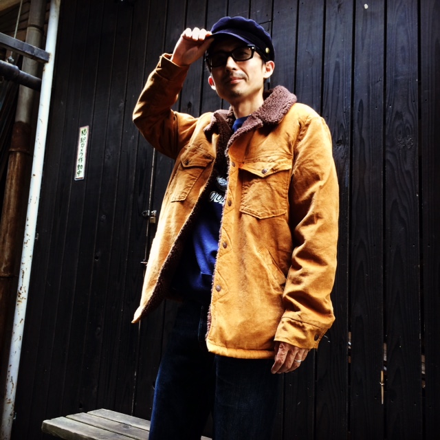 2016/10/19 Category : お知らせ BA:GO WEST毎年お楽しみ新作! GO WESTが毎年リリースするレザージャケットとランチコートが今年も入りました。レザージャケットは、柔らかく古着っぽい味のあるGoat(山羊)レザーを使用。袖口、裾、衿裏にリブを配した70'sな味わいのレザーJKTです。 サイズ感がとても良い。程よくタイトなアームとウエスト。立ち上がりの良い襟もNICEです。シンプルで合わせ易いカタチ。SIZE:2(M)SIZE:3(L) ご覧のように、柔らかくコシのあるGoatレザーは、シワの出方がとても良い。着込んで古着の様な味わいを楽しんで下さいませ。¥42,000+TAXSIZE:(M),3(L) 続いてランチコート!!キャメルのコーデュロイ生地に、こげ茶色のボアという組み合わせ。身頃はボア。袖はボア無しの裏地付き。重ね着の効く仕様になっております。これなら、ヘビーなスウェットやネルシャツ、セーター類を重ねてもごわつきません。ライトダウンを重ねても良いですね。 ボアのランチコートを見ると、どうしても60年代後期~70年代のミュージシャンを想い出してしまいます。ボブ・ディラン、バッファロースプリングフィールド、ピーターポール&マリー、ラヴィンスプーンフルetc...。 前を留めて襟を立てると、とても暖かい。Late60'sのフォークロックテイスト! ランチコート ¥19,800+TAXSIZE:Mのみレザージャケット、そしてランチコート、どちらもあの70年代の雰囲気色濃いアイテム。画一的現代のファッショに、渋~い一石投じてみるのも悪くないですね!