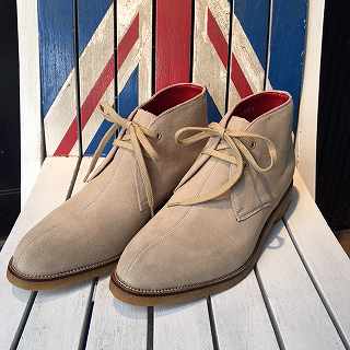 2016/04/17 Category : LIQUID LQ:イカした革靴入荷しております!! リキッド店に、良いタイミングでご紹介したい革靴が入荷しましたので、ブログをアップ♪早速、こちらから!!Original JohnDESERT BOOTS¥23000+TAX つま先のフォルムが美しいアーモンドトゥのスエードブーツ!!センターシーム使用になっている、他にないJohnらしいブーツになっています。ソールは生ゴムのクレープソール!かかとの高さも良いです。クッション性も高く、長時間歩いても疲れなそうです。裏張りはレッドという拘り!正面からのフォルムは美しく、細身なシルエットが良い。個人的には横から見た際の甲のラインがカッコイイです。スタプレや細身のブラックデニム、太めのパンツに合わせてもバッチリでした。サンドベージュとダークブラウンの2色。日本人の足に合わせたワイズEEEです。SIZE-S(25.5cm~26.0cm)、M(26.5cm~27.0cm)。服メーカーが作った靴のため在庫希少です。お早めにどうぞ!!続いてコチラ!!Dry BonesSaddle Oxford¥33200+TAX ドライボーンズ定番人気のサドルシューズの新色ブラック×ホワイトが入荷しました♪古くは19世紀終わりにイギリスで作られ、1950年代アメリカで学生靴やダンスシューズとして大流行したサドルシューズ。鳩目や靴ひもをホワイトカラーにしたり、コバ部分をダブルコバ仕様にしたりと50年代のディティールを思わせるデザインになっています!!内側のステッチが緑色になっているのは、元々黒だったものが経年変化で色が変わったという拘りよう!!ソールもプラスチックソールを採用し、クラシックな雰囲気に!!縫製はマッケイ製法のため、軽量かつ、長時間履いていても疲れにくくなっています。デニムやチノなどカジュアルなパンツから、スーツ、スラックス、トラウザー系まで幅広く、様々なシーンで活躍してくれそうです。SIZE-7、8、9