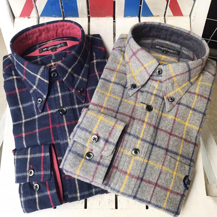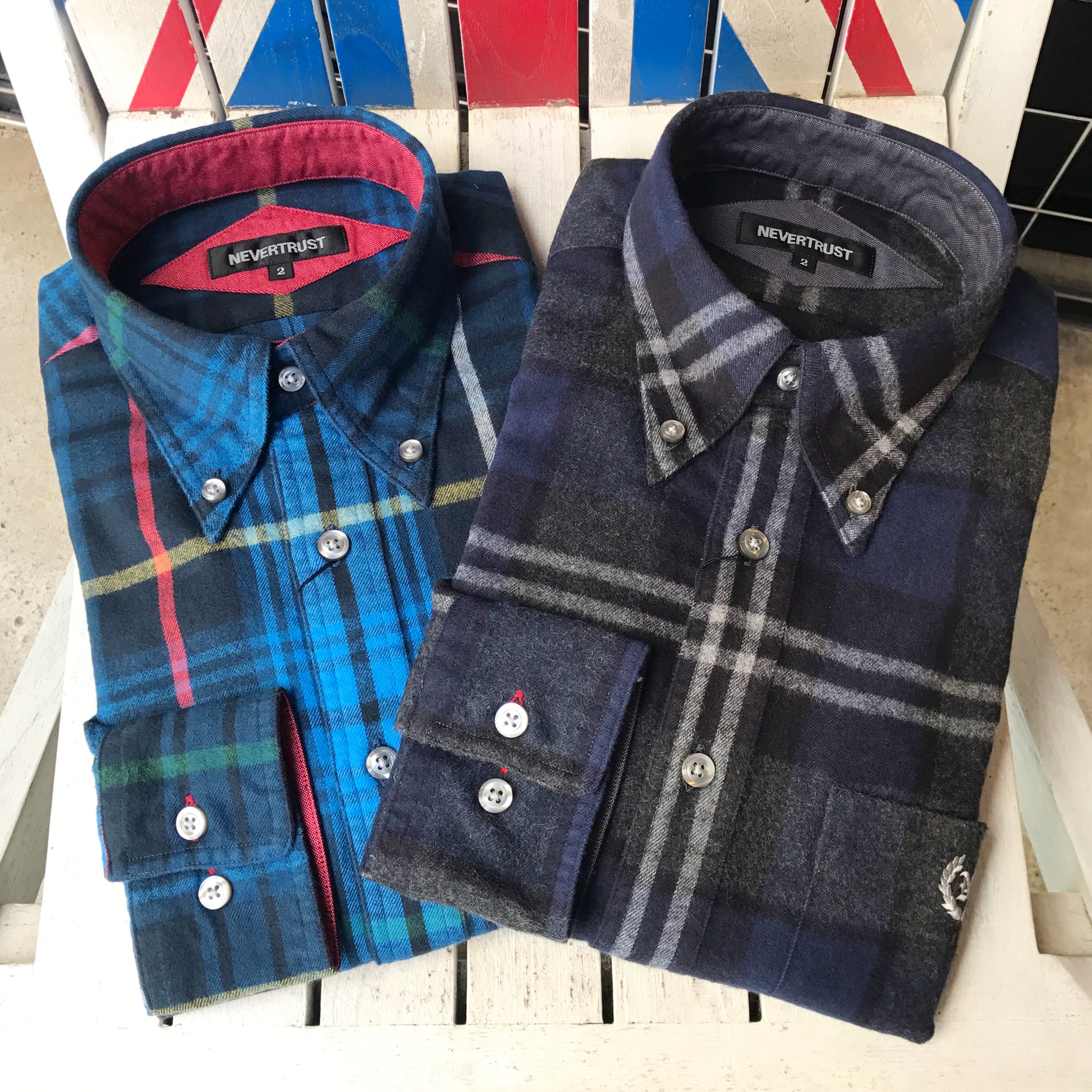 2017/09/28 Category : LIQUID LQ店:毎年好評NEVERTRUSTネルシャツ入荷! お待たせしました!毎年好評のNEVERTRUSTネルシャツが入荷致しました!みんな目のないネイビー×ワインの配色、新鮮なグレーの タッターソールチェック。渋めのグレー(中島さん曰く、レコ屋の店員風)、珍しい配色の鮮やかなブルーの ブリティッシュチェック。保温性の高いヘビーネル素材で、ライトアウター代わりに使えちゃいます!!シルエットはNEVERTRUST安定のタイト美シルエット。スキンズ、モッズ…英な装いにはもちろん、毎年細身シルエットが好きなアメカジの方にも人気です!幅広いスタイルに使える万能アイテムですので、Liquid店以外で普段買い物をするというお客様も是非のぞいてみてください♪秋冬準備、お急ぎください!それでは、モエベイビーでした(*゚▽゚*) PR