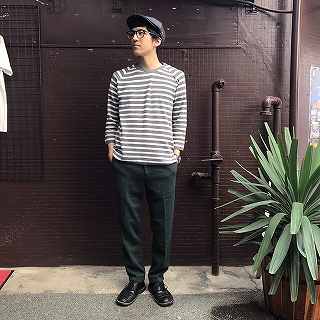 2017/04/27 Category : LIQUID Liquid:小粋なヨーロピアンスタイル! Liquid店に、JohnbullとFOB factoryから、春夏のヨーロッパな雰囲気ある、爽やかなアイテムが入荷しました!今回は新商品を使って”小粋なヨーロピアンスタイル”を提案。まずはこちら、ワイドスラックス。 夏も快適に過ごせる、シャリ感ある生地とワイドなシルエット。9分丈なのもポイントで、靴下を見せてもよし、足首を見せてもよし! このようにボーダートップスやサマーハットでヨーロピアンスタイルがオススメ♪ボーダートップスは、こちらもJohnbullからの新商品、サマーニットです♪ニットというと暑いイメージがありますが、綿麻生地で夏も快適です!落ち着きのある、大人なネイビー×グレーの配色。色違いでグレー×ホワイトも。 肩はラグラン、ややゆとりのあるシルエット。袖は七分で、半袖に抵抗のある方にもオススメですよ!先程のワイドスラックスを使用して、もう少しドレスアップなシャツスタイルも。 シャツはFOB factoryの新商品、コットン×リネンシャツ。暖かくなると爽やかな白シャツが着たくなる!麻特有の抜け感ある雰囲気なので、うちらしく、スカーフやベレーの小物で遊びを。続きましては、BIG TEE。 わきにポケットのついた5分袖のビッグTシャツ。肩の落ちたデザインもポイント。ボトムがシンプルでもキマります!汗ジミ防止の加工もうれしい。そして最後にご紹介するのがこちら、Johnbullのリネントラウザー。 綿100%で、通気性・吸湿性・速乾性があり、真夏も快適!洗濯にも強いのが嬉しいです!9分丈のテーパードシルエットで、シャツスタイルにもバッチリ。履き心地も軽く、ウエストにひも付きでベルト要らずでストレスなし♪※ベルトループも付いていますので、タックインスタイルにも対応できて、色んな履き方が楽しめます!※ 生地のヴィンテージ感ある表情もイイ!華やかすぎず、けれど程よく品があり大人な雰囲気で、暑い夏もオシャレしたい方にオススメです!このように沢山のアイテムが入荷しました!Liquidというと、細身シルエットのUKファッションのイメージが強いと思いますが…、MODS達はヨーロッパに憧れを抱き、夏にはヨーロッパのリゾートチックな装いをしていました♪なので今回の新商品&ご紹介したスタイリングは、フランスでもパリではなく南仏、そんなイメージです。今回ご紹介した商品は、前回のブログでご紹介した”シャツスタイル”とは別の、もうロックファッションは卒業したけれど、どこか匂いを残しておきたい大人の方、普段は細身なシャツに細身のパンツ…けれどたまにはリラックスしたい!って方にオススメしたいです!もちろん、トップスもボトムも、細身のUKなシャツやパンツとのMIXも面白いと思いますので、LiquidのUK ROCKなジャンルがお好きな方も、是非チェックしてみてください☆それでは店頭でお待ちしております!モエベイビーでした!(*゚▽゚*)