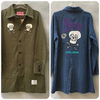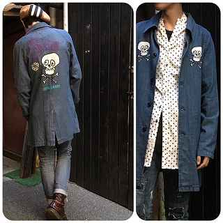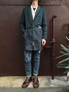 2017/04/27 Category : BABACOOLⅡ BAⅡ2F : EFFECTEN spring collection① 暑かったり、寒かったりの寒暖差も落ち着いてきまして、いよいよ春到来。ミックスカルチャーなストリートブランドEFFECTENより春物アイテムが出揃いましたのでどドッとご紹介!pajamas home gown / ¥17,000+TAX 室内用ガウンをイメージして作られたクレスト柄シャツガウン。オーセンティックな柄にラフなディティールで、スラックス等カチッと合わせても、デニム等カジュアルに合わせても使える汎用性高い一枚。程よく薄手のシャツ生地、春先はもちろん夏の寒い夜の羽織りにも使え、ロングシーズン着回せる万能アイテム!また着用と洗濯によって味が出そうなこの雰囲気、長く愛用できる一張羅的デザインです◎pajamas v neck long shirts / ¥16,000+TAX ガウンと同生地のVネックロングシャツ。比翼ボタン、Vゾーンはジャケットの様なラペルデザインになっておりドレッシーな雰囲気ある1枚。インナーとの組み合わせも楽しめ、ガウンとのセットアップも相性の良いシルエット◎こちらもガウン同様、長く愛用する事で経年による馴染みと味が楽しめそうな生地感♪skull shop coat / ¥21,000+TAX EFFECTENオリジナルのスカルプリントを施したスプリングコート。プリントは特殊インクにより刺繍の様な風合いの凹凸感。ミリタリーなオリーブとルードなデニム生地。一見重たそうな生地感ですが、厚手のシャツ程の厚みで着心地柔らかく、まだまだ朝晩冷えるこの時期には最適です。一重でウォッシュもかかっているので選択もOK。経年によるプリントの変化も楽しみたい♪