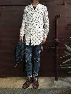 2017/04/24 Category : LIQUID Liquid店:I LOVE SHIRTS!!!!! こんにちは!Liquid店シュンです!今回は”シャツ”をテーマに熱く!ブログを書きたいと思います。僕はトップスと言えばシャツが中心。朝、服を選ぶ時にクローゼットにズラーっと並んだシャツを見るのが至福の時間。なぜ僕がこんなにシャツが好きかというと…僕がUKカルチャー、特にMODSカルチャーが好きっていうのももちろんありますが、自慢のシャツに袖を通す時の気分は、なんとも言えません。気持ちもシャキッとします。今日は気を抜かない・・・、そんな日はタイトフィットなシャツに限る!とね。そして、ラフなスタイルが流行してるからこそ、街中でもカッコイイシャツを着ている人を見るとおっ!っと思います。洒落者なら、他と差を付けるならシャツ!間違いありません!!(^O^)僕がなぜこんなにシャツを集めてしまうか…。シャツのディティールにこだわりだすと、柄はもちろん、衿の長さや形、シルエット、素材など、細かいディティールが一枚一枚全く別物に見えてくる。そのため、醸し出したい雰囲気によって、ちゃんとシャツを選びたくなる!何枚あっても邪魔になりません!知らなければただのシャツ。知れば、知るほどにはまる魅力的アイテム。Liquidには色々なバリエーションがあるので、今日は一部ご紹介!シャツは大きく・デイリーなヘビロテシャツ・スペシャリティーなシャツに分けられると思います。ではデイリーなシャツから! NEVERTRUSTのチェックボタンダウン。このシャツの他と違うところは、細身シルエットと衿がシャープで高いところ。勝手に60's FIT SHIRTSと名づけてしまったくらい、MODな雰囲気。体へのフィット感が全然違います!このモデルに関しては、椿オイル配合で柔らかく着心地バツグン!気持ちよくて思わずこの表情(^_^;)続きまして、 NEVERTRUSTのストライプドゥエボットーニ。ドゥエボットーニとは、襟元に2個ボタンのつくタイプで、開けても閉めても衿を綺麗に立たせ、美しく魅せてくれ、よりマニッシュで艶やかな雰囲気。このシャツはデイリーといっても、グレー×ピンクのストライプってちょいスペシャルだよな~。説明難しいけど…、例えるなら、ペニーレインのつくば店には着ていかないけど、那須店には着ていく!みたいな。日光に行く時、東照宮だけなら着ていかないけど、金谷ホテルのレストランに行くなら着る!みたいなね。特別感とは、自分で作るものなんだよ!!続きまして、NEVERTRUSTのチェックドゥエボットーニ。鮮やかなブルーのラインが入ったシックなネイビーチェックは、晴れた日に。ブルーチェックと言うと、”爽やか”で終了してしまいそうですが、このシルエットによって、どこかROCK的色気が出るのがやっぱりNEVERTRUSTのシャツたる所以!そしてここからはスペシャリティーなシャツのご紹介。 ZAZOUSのレジメンタルストライプシャツと、フラワープリントシャツ。これはUKファッションが好きならば絶対に食いついてしまうキラーな柄、配色。何枚持っていてもやっぱり欲しくなるし、レジメンは、お客さんでもピッチの太さやわずかな色の違いで、使命のようにレジメン何枚も買ってしまう方も(^_^;)フラワープリントに至っては、完全に世のトレンドに対して逆張り。人との被りを避けたい個性派な方には是非「今」着て頂きたい。ライブ・イベントなどここぞというときに、クローゼットから出してコレらに袖を通すとき・・・・・グルーヴします。レジメンタルストライプにしろ、フラワープリントにしろ、生地ありきなので、ある時無い時が極端!出会い肝心。ある時買うのが鉄則です!続きまして、 OriginalJohnのドレスビーグルカラーシャツ。OriginalJohn定番の、ビーグル犬の耳のような形の衿=ビーグルカラー。これぞ60'sLONDONな衿。このタイプは前立てにプリーツが施され、ドレッシーで気品ある雰囲気。結婚式などにも是非オススメ!例えば友人の結婚式・・・、チャペルが終わり、披露宴へ移行、食事・酒も進みリラックスしてくると、上着は脱いで椅子の背もたれへ・・・、上着を脱いだ時にこの衿とプリーツが出てきたら・・・・・、オシャレです!!!!!目を惹くオーバーデザインは着こなすことで他と違うという気分の高揚が味わえます!このように、いくつかご紹介しましたが、シャツとはかくも奥深いモノ。ディティールに興味を持つか持たないか、特別感を感じられるかで、ファッションの幅や楽しみ方が広がります。”キリがないから楽しい!”これぞシャツの醍醐味です。皆様、是非、今以上に”ディティール”に注目してシャツを選んでみてください!愛着も増すし、着ることが楽しくなりますよ(^O^)このGWは是非Liquidへシャツを探しにきてください!沢山種類あるので迷いますよ~!では、お待ちしています!シュンでした!