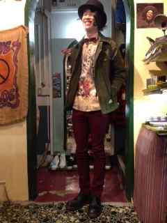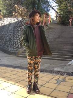 2013/12/11 Category : BLOG STAFF 対抗!スタイリング勝負!! こんにちは! 企画第一弾!「STAFF 対抗!スタイリング勝負!!」 1つのアイテムを使って各STAFFがおのおのコレがBestだっ!というコーディネイトしました。 Men‘s店陣は【THE HIGHEST ENDのA‐2デッキジャケット ¥16590】をお題に開催してみました。 個々の個性が出ていて面白い仕上がりになっています! まずは中島さん! シュガーケーン ベスト ¥17,640 FOB パンツ ¥12,600 slowWear エンジニアブーツ ¥27,090 妄想でこんなんだったらよかったな!っていうハードなオートバイ乗り。 A-2の上に分厚いウールベストを重ねる。 ベストの効果で、フィット感が増しあたたかさUP! 紅一点 ノッチさん Good On パーカー ¥12,600 UPTIGHT レギパン ¥5,145 slowWear ワークブーツ ¥27,090 女子の間でMA-1が流行している様 ですが、A-2もいいですよ。 アクティヴに外で遊ぶ女性のイメージを古着感覚のパーカーとワークブーツで演出。 花柄のレギパンで女子らしさもアピールしてね!! ホンキートンクの新しい風笑 フーミン SUGAR CANE ストライプシャツ ¥11,340 DRY BONES オーバーオール ¥26,250 先輩方が僕は少年キャラだとおっしゃるので、そこに乗ってみました。 A-2やオーバーオール等の無骨なものを着てもバンダナ等の小物を使えば 柔らかい雰囲気になると思います。 Liquidオリジナル ベスト ¥8,400 666 トリコロールストライプシャツ ¥9,240 ORGLORY ¥スタプレ ¥12,600 LOAKE タッセルローファー ¥33.600 僕はいつも通り英国調に!! トリコロールカラーのストライプシャツに 黒の細身のスタプレ、ボーラーHATにLOAKEのタッセルローファー ポイントにオリジナルの赤ベスト!! MODSがスーツの上にM-51を着ているような感覚で A-2デッキを来てみてもいいんじゃないでしょうか? watchdog サージシャツ ¥12,600 スリムストレートストレッチパンツ ¥6,195 デザインの効いたプリントのシャツにシンプルなワインのパンツで アンティークなイメージでまとめてみました! シャツのアンティークなベージュとA-2のカーキがいい感じにマッチ! HIPPIE'S CAR PARKA ¥19,740 サイケデッリクなパーカーと伝説のベルボトムジーンズで ヒッピー風にまとめてみました。 新品のA-2もどこか使い古したような雰囲気に。 父からもらったジャケットというイメージですね(笑) アコギでも担いで街をフラフラしたいですな!! 同じアイテムでも、つくる人が変わることでここまで違うものに変化しました。 コーディネイトの可能性は無限大ですね! お気に入りのコーデはあったでしょうか? 第2弾はレディースです!