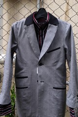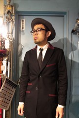 2012/05/11 Category : BLOG リキッドオリジナル出来ました!!! エドワードジャケットです! 今に着るには暑いよーなんて言わないでくださいw これ!薄手のコットンで裏地なし!Tシャツの上にだって着れちゃう、 そう!これからの時期にピッタシ! なぜ今か?と言うと・・・・・ 毎年、今時期から夏にかけて、着たいなーと思う、夏ジャケ! 紺ブレやハンティングジャケット、ノーフォークジャケットなどをよく雑誌等ではオススメしているようですが、 それらも僕は欲しい!ですが・・・・ その前に!! 僕はこのエドワードに注目しました! TEDS~50’s系はもちろん、ロック好きなお客様が夏に着るジャケットがあってもいいんじゃないかな! と思って考案した自信作なんです☆ 夏にジャケットは、確かにあついんですがw 夜、酒飲み~や、避暑地に旅行~、冷房がキツい電車内等、そんなときに着たいと僕は思います。 着なくたって、バッグに入ってるだけで安心。(僕は寒がりなので余計w) こちらは、色違い! k 英国トラッド風!千鳥格子!!!切替えに部分には黒生地を付けました!必殺デス! で、 こんな組み合わせだって出来ちゃう!!! リボンタイでエドワーディアン風に! リボンタイでエドワーディアン風に! 初めの狙いは、夏に着るジャケットとしてだったんですが、 出来あがってみたら、コレ、イベント、二次会等のパーティーでもカッコ良くないですか? ボトムにはスラックスやスタプレを合わせちゃえば、しっくり決まっちゃいますよ! 僕は、パンクロックなTシャツに、ダメージジーンズを合わせ、ベレー帽。こんなコーディネートが好きです! このコーディネートは確か海外のストリートスナップで、昔見て、かっこいいなと思った覚えがあります。 ここで紹介したいところですが、その写真がないっ!というオチw 値段は16590円! 是非試着しに来てくださいね☆ 小貫でした。