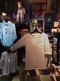 2013/04/28 Category : LIQUID 駆け足紹介!リキッド店の新商品! GWに突入したところでリキッド店の新商品をサクサクと紹介します。 さ! まずは、FOBから新星! テーパードチノ。 FOB最細モデル。といっても、要所で適度な緩みもあり、ワークブランドの矜持もしっかり。 素材がまたシッカリ感バッチリのウェポンチノ。触ってみてくださいね! ¥11,550 4サイズ オリーブ、ネイビー、ベージュ 次は、666からのラインポロシャツ。 パンクロックなブランドですが、コレはMOD。とはいえ、とてもシンプルに仕上げてますので、単にレトロな雰囲気がお好きな方のカジュアルウエアとしても良い。 ここから自分の流儀でどう着こなすか?です! ヘアスタイル、被り物、ボトムなど、周辺の固め方次第でネ! ややゴワッとした丈夫そうな鹿の子地。ラインは666オリジナルの織りです。 80~90年代の、ネオネオMODS?なスタイルにいいですね。 ¥12,390 3サイズ 画像の色の他、ワインの部分がブルーというヴァージョンも有り。 お次はフランス路線。 ボーダーで5分袖、胸にちょっと斜めにポケット付き、丈はちょいと長め。 生地は目が詰まってゴワッと丈夫なバスクの天竺生地(コットン100%) 着丈がちょっと長めになってます。 コレはお洒落! 連休のお買い物としては一番オススメ。 ¥6,825 2サイズ グレーもあります。 最後は、古き良き米国青春衣料。 50年代アメリカにかつて実在した謎のブランド、スター オブ ハリウッド復刻のオープンカラーシャツです。 言葉で説明しようがない、なんとも印象的な柄のパターンが、この辺お好きな方の購買欲をそそります。 淡いクリームベージュにブルー絡みの幾何学的な柄。 ミッドセンチュリーモダンです。 よく見ると、織地も表情があって味わい深い。 7 3分けのヘアスタイルにハマります。 ¥14,700 S Mの2サイズ ブラックベース、ピンクベースもあって、どれもサイコー! こういった調子で各店紹介しきれないくらい新作が入荷しております。 GWってことで、ついついイキってしまいそうですが(笑)、マイペースでチェックして頂ければ、と思います。 皆さんと、服や音楽をはじめ、いろいろなお話ができるのを、心から楽しみにしてお待ちしてます!
