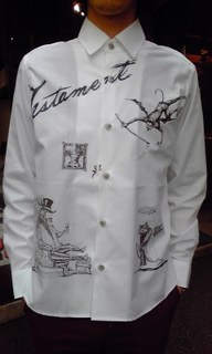 2013/04/05 Category : BABACOOL ファッションをもっと楽しく! どうも、130%奇妙な男、ナベです。 なにやら最近Liquidのヤングライオンが色々と吠えているみたいですね(笑) 今回はBABACOOLのヤングライオンである僕が、吠えさせていただきたいと思います。 と、その前にDeity's Watchdogから、今回も独特な世界観を持ったアイテムが入荷してきましたので紹介します! Dead tree Jacket / ¥17,640 麻のような、サラッとして軽い着心地の2ボタンジャケット。 定番のブラックと鮮やかなサックスブルー。 どちらもこれからのシーズンに大活躍してくれそうです! 着てみました。 タイトめで、裾がAラインのように開くシルエット。 女性の方でも合うと思います! 袖をまくると木々をイメージしたプリント裏地が。 胸元には3匹のウサギバッジ。 いいアクセントになりますね。 同じ生地と裏地を使ったショート丈のサルエルもあります。 Dead tree Pants / ¥14,490 このジャケット、セットで着てみるとシルエットのよさがわかります。 タイトな作りやAラインは、サルエルパンツとの相性抜群です! もちろんほかのサルエルでも、ストレートシルエットのパンツでもキマります! セットアップで着てやるぜ! というチャレンジャーも、もちろん大歓迎です! さらにWatchdogからこんなシャツも。 Testament shirt / ¥12,390 最期を迎えようとしている紳士に天使と悪魔がやってくるという、なんともシュールなプリントシャツ。 一枚で着たい、インパクト重視なシャツですね。 さてさて、このWatchdog、奇抜で独特な世界観を持ったブランド。僕はそこが気に入って、よくWatchdogを着るのですが、ちょっと思うことがあります。 ファッション誌を見ても着まわしがどうこう、モテるコーデがどうこう・・・結局どれも似たりよったりだったり・・・ もっと自分らしく服を着ましょうよ!! そりゃあファッションは自己満足の世界ですからそれでいいと言われてしまえばそれまでなんですが、せめてコダワリや信念を持って服を楽しみたい。 僕は人を楽しませたいという信念を持って服を選んでいます。おかげ様でお客さんやスタッフにはよく突っ込まれますが(笑) でも僕はそれも含めてファッションを楽しんでいる! とか考えていたら、最近になってお店にファッションスナップを撮っていたり、ファッションサークルを立ち上げたという学生さんがよく来てくれるようになっています!僕やリキッドのシュンと同じ世代からのパワーを感じ始めてワクワクしています! これからは若い世代が盛り上げる時代だ! あ、もちろん大人の方のご来店もお待ちしております(笑)