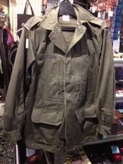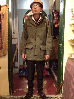 2013/01/12 Category : BABACOOL BA:新着情報 フランス軍M-64ジャケット&フリースサロペット 即戦力で、春まで大活躍の、フランス軍M64ジャケットの紹介です。 コレは、フィールドジャケットと呼ばれるもので、アーミー(陸軍)の野戦用ジャケット。 ネイビーやエアフォースみたいに、特別な防寒性や機能を持っている、というよりは、まあ、兵士のスタンダードなジャケット。 もっとも軍服らしいのが、フィールドジャケットなのです。 一番有名なのが、米軍のM65。フィールドジャケットの最高傑作。各種リプロや、M65モチーフの カジュアルウエアはたくさんあります。 僕もM65のUSEDを長年愛用していて、その機能性の高さ故、10年選手です。 がしかし、 ヒネクレモノのBABACOOLHEADSには、知られざる名品、フランス軍M64ジャケットをオススメしたい。 星の数ほどあるミリタリーウエア、何でもかんでも入れて量で勝負する気は無い! コレダ、というモノを絞っておすすめしたいから。 野戦服然とした佇まいでありながら、どこかエスプリを感じさせるデザイン。 例えばエリの形とか。 腰の大きなフラップポケットが、いいバランスとアクセントになっています。 そしてミリタリー物お楽しみの、付属機能は、 脱着可能なフードはもちろん付いてますが、結構春の冷たい強風に有効なのが、衿元の防風ストラップ。 普段は内側に収納、というより押し込んでおく(笑)。 閉めると結構暖かいです。 そして、バイク乗りの方にはありがたい、袖口のゴム。 これ、結構キツめに出来てまして、最初、ちょっとストレスを感じたのですが、よく見たら、スナップボタンで調節出来るようになってました。 こういう細やかな配慮は、カジュアルメーカーではなかなか実現できないところ。 やはり、国家予算使って戦場で着る服作ってるんだから出来る事ですね。 さあ、着用してみましょう! ゆとりが有るのにスマートなシルエット。 さすがユーロミリタリー! 大きなポケットのバランスがいいでしょう? だから、ファッションユースでもガンガン使えるんです。 軍服の平和利用。ジョンレノンの意思を受け継いだつもりで。 ジャンルレスできれるこのM64ジャケット、所有して損はないですよ! お値段も安い! フレンチアーミーM64フィールドジャケット ¥8、190 ところで、こんな珍品も入ってます。 U S NAVY フリースサロペットパンツ ¥6、090 モデルがコータローってところがな~!(笑) 現物見ていただかないとわかりませんが、形も可愛いし、とっても暖かいんです。(コータロー断言!) そして、軍モノならではのギミックもたくさん! 珍品オモチロミリタリー、オチャメなカッコにも使えますよ!