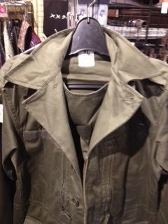 2013/01/09 Category : LIQUID リキッド店の商品紹介、ジョンブルミリタリーコート どうも小貫です。 明けましておめでとうございます。おかげさまで大好評の初売りでした。 忙しくてあっという間に三が日が過ぎ、落ち着いた平日を迎えております。 まだまだ寒い日が続きますが、防寒対策をお忘れなく。 そこで今、そして春にオススメなこんなコートを御紹介します。 カジュアル&ビジネスシーンで大活躍間違いなしのミリタリーコートです。 ドンっ ステンカラーコートはモノにもよりますが、いい人っぽく見えたり、お父さんぽく見えたりしちゃいますよね? それ自体は否定はしませんが、(僕も持ってますしw)、 そこが苦手な方も案外多いのでは? このミリタリーテイストのコートは、「いい人っぽく」見えなくて良い! マットブラックとアーミーグリーン 士官(将校)クラスの、位の高いイメージに僕は見えます。 だからいい人っぽく見えない。ちょっとヤサグレた感じが出そう! この生地はゴム引きのコットン。 アーミーグリーンはDEAD STOCKの軍モノを使っています。 マットブラックはそれっぽく再現したジョンブルオリジナル生地。 ガシっとした手触り。 ゴム引きと言えば、英マッキントッシュでお馴染みですが、軍モノにも使われてますよね。 ゴム引きは、生地に天然ゴムをのばして圧着し、熱を加えた伝統製法。 防水性がとても高くなり、雨の日でも安心なんです。 昔、うちで扱っていたフランス軍のF2パーカーにもゴム引き加工がされてたな。 共通して言えるのは生地がしっかりとしてガシっとしている。 触ってみれば分かりますが、いかにも雨風に強そうな生地なんです。 アメニモマケズ、カゼニモマケズ、上司にも負けず(笑)、戦う男には必要ですよ(笑)! 衿を立てると チン(あご)ストラップ。 肩にはガンパッチ。 エポーレットも付いています。 ここがミリタリーテイストですね! チンストラップを留めるとこんな感じ。防寒性バッチリだ。 内側には・・・ ポケット付き。 中はパイピング仕上げ。綺麗に処理された裏側。 思わず見せびらかしたくなりますね。 裏まで手抜きなしっ。 表はミリタリーデザイン、中は綺麗めな仕上げ。 両方を併せ持っちゃってる贅沢なコート。 雨具的な道具としてもみても良し、男のギヤだ。 これで42000円!! 安いとは言いませんが、納得の価格だと思います! 是非!!!