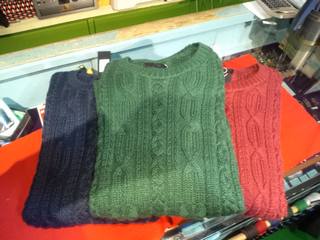 2012/11/29 Category : LIQUID リキッド店、カラフルニット御紹介!! ババクール店のモッズコートに対抗して、リキッド店では負けじと、今の時期にピッタリのニットをご紹介します。 まずはコレ!! modem design ケーブル編みクルーネックセーター ¥9975 最近注目度の高い、カラフルなニット達。 毛羽立ちを抑えてあるので、妙にほっこりして、”お父さんッぽさ”が出ちゃってる感じじゃなくて、見た目はむしろクール!! 肌触りが非常に良く、厚みもあり、尚且つ柔らかい! 温かくて着心地がとても良いです。 1枚で外側に着ても良いし、 このようにコートやツィードジャケットのインナーとして着てもしっくりきます!! 同素材、同色でショールカラーカーディガンもあります。 ¥10290 modem design Vネックカーディガン ¥8295 こちらは先ほどのケーブル編みニットとは違い、モヘアのような毛羽立ちのあるネップ入りカーディガン。 ネップ入りのニットにこげ茶のクルミボタンが映えて、とても味わい深い雰囲気で、かっちりとせずに緩いテイストで着れます。 ほっこりとしたイメージで、見た目も、着心地も優しく温かい、これからの季節に重宝するニットです!! インナーにはSanやFOBのワーク寄りなシャツがオススメです。