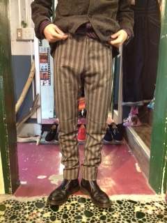 2012/12/04 Category : BABACOOL ORIGINAL JOHN新作です!! 今回は僕(シュン)が大好きなオリジナルジョンの新作を紹介します!! 最近はババクール店に立つことも多く、自然と目に付く商品のなかて、僕の心を捉えて離さないのがこの ORIJINAL JOHNです! 言葉で言うのは難しいけど、UKロック系ブランドの中でも、ココでしか有り得ない世界観があることは間違いないですね。 なんか、、、UKカルチャーのスタイルの深層部っていうか。 今回紹介するのも、そんな、「くすぐる」アイテムです! まずはコレ!! ウールスクールジャケット ¥29925 薄いメルトンのようなウール地を100%使用したスクールジャケット。 二人ともサイズM着用。シルエットはタイト。しかし、ウエストは多少の絞り。袖も細過ぎない、ややゆとりがあります。 サイズもそうなんですが、雰囲気的にシャツやタイなどと合わせてスーツスタイル風に着てもいいだろうし、デニムやチノなどと合わせてちょっとカジュアルに着ても良いと思います。 そして、オリジナルジョン一番のこだわりはここではないでしょうか!! パイピングとテープによる2連のライン!! ライトブルーには、白パイピングにネイビーテープ! ブラックには、朱色のパイピングに生成りのテープ! ヴィンテージのパイピングジャケットを参考にしてるようで、他のブランドではなかなかお目にかかれない パイピングジャケットになってます。 ジョンのオカダ氏の自信作であります! 次はコレです! WOOL 5P SULIMPANTS ¥13、650 ジョンオカダ氏はカジュアルでスラックスを履くのがお好きだそう。 ラフに崩してても、ビシッとしますもんね! たいがいはジーンズタイプの5ポケットパンツを履いてるもんだけど、スラックステイストで履けるこの5Pパンツなら、 オカダ氏提唱の、ロックテイストのカジュアルにスラックスを取り入れるきっかけになるのでは!? シルエットはスーパースリム。ババクールでセレクトしたのは、ストライプのヴァージョン! コレが一番60’Sっぽい! ストライプの中に金ラメ糸入ってるトコが英ロック! バックのディティールや、ポケットの袋地にも、贅沢&意表ついたコダワリが! これは、 見てのお楽しみです! そして、今年のジョンのラストリリース アイテムが、このPITH HAT。 ¥8190 ここからの語り、ナカジマに変わります! 英ROCK~POPミュージックの中にそこはかとなく漂う、田園への憧憬。 英トラディショナルってのは、田園から来てますって! んで、英ロックファションってのは、硬い伝統に反発してるクセに、チャッカリとトラディショナルを取り込んでる。 そこがカッコイイよね! この雰囲気、まさに英田園POP! この3色のガンクラブチェック、モロに英! ボールチェーン付きのジップポケットはコダワリかな? いかに英POPに被りこなすかが腕の見せどころ。 フードものに合わせるのもいいし、メルトンのアウターにも合う! ぜひ挑戦してみて! そして、ウチではまだまだ少数派のコレが、 もっと売れるようになればいいな! 山形県のBLACKBOX(オーナーは茨城出身!)さんでは、びっくりするくらい売れてるみたい。 センスいいね。 僕も、今年中にはコレをデビューします! 以上!オリジナルジョン新着情報でした! PR