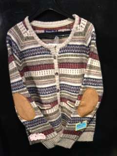 2012/10/18 Category : BABACOOLⅡ ニット!ニット!ニット! In2階☆ 暑かった日々が遠く感じ、急に寒くなってそろそろあたたかいお洋服が気になるのでは? ご存知の方もいるとは思いますが、ババ2の2階はニットやアウターが試着フリーなっているのです♪ 2階はもう冬に向けての支度が始まっていますよ♪ そんな中から今年のテーマ、「英国田園POP」にぴったりでリーズナブルなニットが紹介! オールウール100%!エルボーパッチ付!! フェアアイル柄カーディガン 5145円 カラーも3色!パーカータイプ、ボーダーも2型あります! こちらもTシャツかっ!って値段な4095円!! カラーは4色!もうすでに色かけ出てますので、お早めに♪ パーカーの無地もあります♪ 5145円!ジップにフリンジが付いているのがポイントです♪ こんな感じにありますのでぜひぜひ見に来てください!! アウター特集も近日中にアップしますので、ご期待ください♪