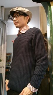 2012/10/21 Category : BABACOOL BABACOOL新着。リーズナブルだけど、一味違うゼ! 新入荷が続いてアップが大変!!! リーズナブルだけど、単なる安いモノとは雰囲気が違う・・・、そういうセレクトならお任せ下さい!!! そんな商品の中で、紹介し忘れていたのが、クールスキャットのPコートです! 軽くて柔らかく、暖かい。 小ぶりな衿もオシャレ。 そして、その生地の柔らかさ故、とってもスッキリしたシルエット! どちらかといえば、ウールのダブルのジャケットって感覚で着まわしていただきたいです。 前述のとおり、生地が軽くて柔らかい効果で、フロントを開けて着た時も、スッキリとした感じで着れます。 ダブルって、開けて着た時に打ち合わせがダブつくのが気になるけど、このPコートは、むしろ開けて着たときの 綺麗さも、ウリです! 試着画像はブルー。ほか、ブラックとブラウンがあります。サイズは、1=S、2=M、3=L 裏地がメチャメチャカッコいいんで、お店でチェックしてみて! ¥12、390 絶対お値段以上のクールスキャット!!! お次はニットです! カットソー感覚で着ていただきたい、リブ編みのクルーネックセーター。 ¥6090 サイズ M L 海軍のミリタリーセーターが元ネタ。 身幅もアームもタイトですが、編み地がリブ編みなので、伸縮幅がひろくて楽チン! あらゆるジャケットのインナーにおすすめ出来ます! 編み地の縦スジ模様は、結構ワイルドですよ! そして、 同じ糸を使用した、ショールカラーヘンリーネックセーター。 ¥7245 サイズ M L これもやはりアーミーセーターが元ネタ。 実物着てみたことあるんですが、アームがどうにも太くてちょっと僕には着れませんでした。 コレは、シルエットもちゃんと修正されていて、アーミーセーターの、あのカッコよさそのままに 程よいフィット感で着用できます! あ、画像隅になんか写りこんでる・・・。 関係ない関係ない! 中に着るシャツ選びで色々な顔が作れそうですね。 ババクールで毎年入ってくる、{フランスC級映画に登場する、ロクデナシが着てるセーター}です。 ある種のヒネクレセンスを持ってる方には気に入っていただけること間違いなし! 色もこんだけありますから! 必ずお気に入りが見つかります! ただ、リーズナブルなので衝動買いが多く、サイズ切れがボチボチ出始めましたのでお早めに。 愛用の革ジャン、コート、ジャケットに、ぜひ合わせてみてください! 以上、BABACOOL店新着紹介で し た!