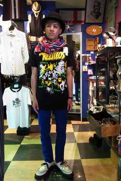 2012/07/07 Category : LIQUID ロックTシャツの着こなし!! 僕、シュンがリキッドのオススメTシャツを紹介します。 今回は、666のバンドTシャツ達です!! デザイン重視でセレクトしたバンドTシャツです。 666には、他にもたくさんのバンドTが存在しますが、リキッドに置いてあるのは小貫さん厳選のこの6枚です。 このTシャツのシリーズはやや丈が長めで、背の高い方にはちょうど良い感じなのですが、短い丈がお好きな方にはちょっと長いかなという声もありました。 そこで小貫さんと僕で考えました。 丈が長くてもカッコよく着れるスタイリングを!! まずは1枚目! rezillosのTシャツを使ってみました! 細身のスキニーと合わせたコーディネイトです。 丈が長い分、細身のパンツでバランスを整えました。 細身のブラックデニムでもカッコイイのですが、夏ということでブルーのカラースキニーにし、足元はジョージコックスを!! Tシャツの首元が寂しいときはこのように薄手のストールを巻いてもイイですね。 続いて2枚目!!DAMNEDのTシャツ ショーツと合わせてみました。 リキッド オリジナルのサスペンダーショーツを使ってます。 ソフトパンクな雰囲気。 このようにショーツと合わせてもバッチリです。 最後はこちら!!! BATMOBILE! あゆみさんに着てもらいました! 女性の方にも人気のバンドTは、このようにビッグT感覚で着れます ショーパンとの合わせがイイですね! あゆみ先輩可愛いです(笑) 女子の皆さんにとっては、お尻が隠れるくらいの丈というのも、うれしいポイントみたいですね。 どうしても丈が長いのが嫌だという方は自分で切ってしまうのもアリですよ!! ロックTですから、カスタムしちゃいましょう! 今の時期、インパクト大のカッコいいバンドTは是非とも主役にして着こなしたいところ! みなさんの腕の見せ所ですね! 是非チャレンジしてみてください! これからの季節はフェスやイベントに着ていくのもアリですね!!