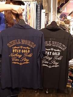 2012/03/24 Category : HONKEYTONK ホンキートンク新作 ホンキートンク!春夏、必殺のアイテムをご紹介! スカルワークス ヒョウ柄切替えワークシャツ ¥10290 ヒョウ柄フェイクファー生地の切り替えがさりげないけど、インパクト大! コットンポリの混合生地でパリッと感があり、刺しゅうの丸みのある書体など、ハードすぎないバランスのとれたワークシャツ!無骨に見せるのに、サーマルロンTと合わせるのがとくにオススメです! 前が、コチラ! 後ろが、コチラ! スカルワークス レーヨンボーリングシャツ ¥10290 レーヨンのケダるい雰囲気がカッコよさを際立たせる一枚! ネイビーとブラックの2色。どちらも刺しゅうとの配色がgood!どちらにするか、悩んでしまいますね。(笑) 男を引き立ててくれる、ストレートなボーリングシャツ! かっこいい!!! 前が、コチラ! 後ろが、コチラ! GOWEST ジャガード織り半袖Tシャツ ¥7140 japanmadeのジャガード織りTシャツ!!+染めてある風合いがシブくてカッコいい。ジャケット、シャツはもちろんラフなパーカーにも相性イイです!
