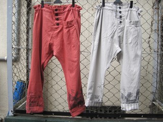 2012/01/11 Category : BABACOOL ROYAL SPRING新作! ROYAL、SPRINGデリバリーが始まり、やってきました第2段!! オアシスワークジャケット/¥16590 裾に砂漠の中の街、オアシスのプリントが入ったワークジャケットです。一重の綿麻生地に、モノクロの掠れた風合いでより雰囲気が醸し出されています! 袖を折り返すとサテンのペイズリー柄になっていて、ちょっとしたアクセントになりますよ〜♪ 春夏は上着で!秋冬はアウターの下に!オールシーズン楽しめます! お次は、オアシスワークパンツ/¥14490 こちらもジャケット同様、裾にオアシスの様子が描かれたジョッパーズ風パンツです。 裾は折り返すと裏にはストライプの生地になっています。ロールアップすることでまた違った印象になります。 セミサルエルで、タック付きのポケット付き!腰回りにボリュームが出て、独特のシルエットになっています。 ウエストは絞って履くことができるフリーサイズなので、楽ちんで穿きやすい一枚です。 また、前についた大きめの4つのボタンもアクセントになってGOOD!。 これから春になるのが、待ち遠しくなりますね☆彡
