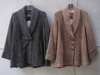 2011/10/09 Category : BABACOOLⅡ COCODEAL 新作!! ネップツイードコート/¥16800 ヘリンボーンのネップツイードを使ったとてもクラシカルなジャケットタイプのコートです。 ファー付きAラインコート/¥27300 ゴージャスなラクーンのボリュームファーをつけたAラインコート。 女優帽などがとても似合いそう。ファーは取り外し可能です。 レトロ小紋柄ワンピース/¥9975 テロっとした落ち感のある生地にレトロな小紋柄プリント。 クラシカルな雰囲気のある1枚です。色はクロベースもあります。 衿付きボーダーワンピース/¥6930 ボリューミーな袖とゆったりAラインなのがとても着やすく、可愛いです。 バックはパールボタンになっていてレトロな雰囲気。 色違いで着てみました!