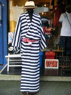 2011/06/26 Category : LIQUID LIQUID 新着情報。 LIQUIDに粋な一品入荷しました! 月影屋 オリジナル浴衣「ヨコシマの浴衣」/¥47250 夏といえば、祭り。祭りといえば花火。そんな風情のある風景に本格派で、粋な浴衣なんていかがでしょうか? 和物本来の良さをいかしつつ、モダンでちょい悪な雰囲気。ストローハットとの相性もばっちりです。 この浴衣、かなり手の込んだ昔ながらの手法でつくられているんです。総手まつり縫いで、ミシンを一切使用していません。縫い目もわからないぐらい、細部まで職人芸が発揮されています。 本格派のつくりでありながら、着方は王道をいかず、あえて帯は合わせず、紐でキメる。紫と赤二色あります。江戸の粋、歌舞伎もの(傾奇者)が現代に現れたようなカッコよさです。真夏の暑さを、男意気で乗り切りましょう! もう一柄あります。「道成寺の浴衣」/¥47250
