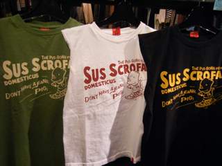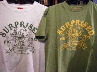2011/03/03 Category : HONKEYTONK HT:ダルチTシャツパート2 続いて・・・ C・Cレモンでお馴染みの シン〇ソン!?! スケボーの板には、ダルチのロゴが★ そして、左袖にはこのワンポイント! 続きまして、 m&〇S!?? コロコロっとしたのが伝わってきますよね?♪ 続いて、 ピンク〇ンサー!!? こちらが、バックプリントになります! 胸にはワンポイント! THE PIG? やっぱり鼻は、ブタッパナですね(笑) 答え合わせは、お店で★お待ちしておりまーす!!!