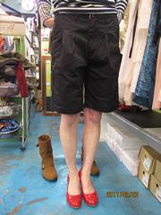 チノパンと同じ生地を使ったショートパンツ。前に2タック入っているので、立体感が出て、腰周りをキレイに見せてくれます。膝丈くらいなんですが、ロールアップして少し短めに穿いてもカワイイ!