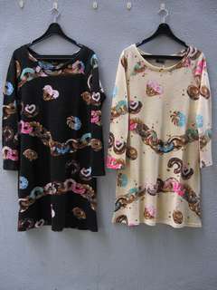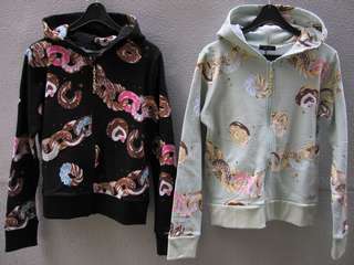 2010/11/04 Category : BABACOOLⅡ MILKドーナツ柄シリーズ入荷!!! 待っていた人も多いのでは・・・! MILKの冬物の中で1番人気のドーナツ柄シリーズが入荷しました!! カラフルなドーナツの総プリントになっていて、パーカー・カーディガン・ワンピースがあります。 ★POPでキュート★まさに、MILKらしい1枚ですね! ZIP UPパーカー¥18,270 ジップの所にゴールドのくさりのチェーンが付いています。 ファー付カーディガン¥16,170 ファーは取りはずし可能。左下にロゴプレート付。 ワンピース¥17,640 左下にロゴプレート付。着てみると、シルエットが意外に大人っぽい。