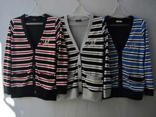 ハートのボタンがカワイイ、ボーダーカーディガン。