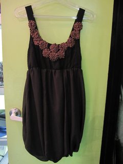 胸元に付いたいっぱいのお花がカワイイ、このワンピースは、2wayで着ることが出来ます!1つは、写真のように、膝丈でバルーンになります。もう一つの着方は、下の写真のようになります。