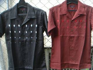 2010/07/19 Category : LIQUID ZAZOUSの新作です!! ZAZOUS ダイヤ刺繍オープンカラーシャツ 2カラー 11550円 きらりと光るダイヤの刺繍が、渋いロックテイストでクールな雰囲気。 この衿、この形は、よくボーリングシャツに使われるデザイン。 それが!!ZAZOUSが作るとこんなにオリジナリティー溢れるシャツになっちゃいます! 大人のロックスタイルにいかが?? ZAZOUS 幾何学柄ポロシャツ 11550円 60年代、70年代イメージのサイケでグラムなポリエステルポロシャツ! その時代の古着のシャツには派手目な色合いが多いけど、 このZAZOUSのシャツはクールなモノトーンカラー。 そこがミソですね!! 少数派の幾何学柄は出会いが肝心!貴重ですぞ! ZAZOUS クロスポロシャツ 9240円 イングランドの国旗を思わせるクロスデザインのポロシャツ。 胸にはライオン刺繍が入ってます! チェックパンツにポークパイハットで王道のUKロックスタイルにチャレンジしてみてはいかが??