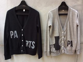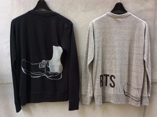 2015/10/19 Category : BABACOOLⅡ 秋の心地良いお休みの日に!BABACOOL2店のおしゃれなアイテムを紹介します! 今回は、私ナカジマがババクール2店のアイテムをご紹介。VERKというブランドの、手刷りプリントのカーデガンと、クルーネックのスェットシャツです。カーデガンは、「PARTS」というテーマで、身体の一部分、足首のイラストをプリント。 文字とイラストの位置は、手刷りによって、一枚づつ位置が違います。版は手描きのイラスト、プリントも手刷り、手作り感いっぱいの一点物感覚が楽しい。シンプルな装いに羽織ると良いですね。女性のプリントは、アクビをしている、という、CHILLなグラフィック。 バックには、スペル変えの、DATERIPPERの文字。聞いたことあるタイトル、、、。生地も、ユル織りの、柔らかい中厚のスエット生地で、とても着心地が良く、インナーにしてもゴワゴワしません。着てももちろん、見ていても、なんともRELAXINな気分にさせてくれるスエットシャツです。製作者の、KATUYA TERAKADO氏、実は僕の10代の頃の親友でして、ロックやPOPミュージック、POPアート、ヌーベルヴァーグ映画などなど、今の僕の基礎となるカルチャーを教えてくれたのは氏です。まあ、恩人ですね。かの、「MAKE IT FUNKY]も、氏の作品です。氏の作る服は、何年たっても変わらぬ、POPミュージックやARTに対する、「程良くLIGHTな想い」が感じられて、好感持てますね。本人が楽しみながら作ってるから、見ていて楽しいのです。ギャラリーや外フェス、PARK、カフェ、そんなところへ着てお出掛けにピッタリだと思いませんか?グラフィックの楽しさを、存分に楽しんで頂ければ!カーデガン ¥7、500+TAXスエットシャツ ¥7、900+TAXネイビー、グレーメンズ、レディースサイズ有ります。