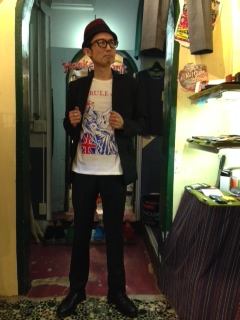 2015/05/12 Category : BABACOOL 帰ってきた!クールスキャットのモッズスーツ!ババクール店 ロックテイスト&リーズナブルプライスで、2年前からババクール店で、一世を風靡???していたクールスキャット、海外生産特有の難しさから、しばらく充電期間をおいておりましたが、やっとこ再始動をスタート!今度は国内生産に切り替え、安定供給に重きをおかれたようです。その分、お値段が少し上がりましたが、それでもリーズナブル、あるいは適正だと思います。大体が、今までは「安すぎ」でしょう!(笑)さて、この度リニューアルして入ったモッズスーツ、リニューアルといっても、生産背景、そして、生地、縫製のクォリティーがアップしただけで、型は以前のものと全く同じです。おさらいすると、3ツボタン、サイドベンツ、チェンジポケット、タイトなシルエット、という、モッズスーツに要求される必要なディティールは完備。生地は、ポリエステルとレーヨン混の、いわゆるT/Rといわれるチープなスーツ生地。ポリウレタンも入って、ほんのりストレッチ効いてます。メリットとして、チープな生地ゆえ、高級スーツではとうてい不可能?な、カジュアル利用、または、ライヴやクラブイベントで暴れ、汗かいちゃうようなシーンでの利用、そして、「なんちゃって感覚」で、モッズのシビアなルールを崩した、自由度の高い着こなしへの利用が可能なのです!一荒れしそうな結婚式や2時会パーティーなんかにはもってこいのスーツ!では、コーディネートのほんの一例を!正統派?UKテイストのプリントTシャツで。 フレッドペリーラインポロで、「SKA]な雰囲気。 MILKBOYのパンキッシュなTシャツで、ロンドンPOPな着こなし♪などなど。ほかにも、ボーダーTシャツとベレーでフレンチかぶれ野郎とか、デカイ衿の柄シャツで、サイケ、あるいはSOULな着こなしとか、メタリックや蛍光色、ヴィヴィッドカラーを取り入れてスニーカーをあわせた80Sな着こなしとか、いろいろ。ガチガチのスーツではムリのある遊びまくったコーディネイトが楽しめるのは、このスーツならでは♪肩肘はらずに、自由に着ちゃってください!ジャケット¥18、800+TAXパンツ¥10、800+TAXセットアップ価格 税込にすると、¥31、968!!!まだまだ安いでしょう!サイズ 1(S) 2(M) 3(L)ジャケットとパンツのサイズの組み合わせが出来るのも嬉しい。ジャケットがLでパンツがM、といって具合です。安定供給とはいっても、タイミングによってサイズの欠品もけっこう出るので、今回入荷分、お早めに是非ご試着だけでもしてみてください!※ちなみに、ちゃんとしたフォーマルなシーンで着るモッズスーツが必要な方は、リキッド店の、OR GLORYのブラックスーツをオススメします。こちらは、税込¥60、000前後です。ナカジマでした!