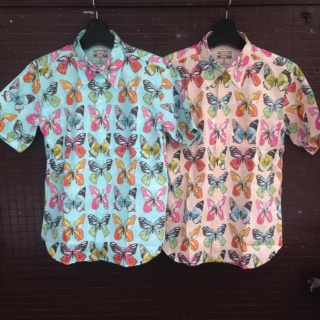 2015/05/23 Category : BABACOOL BABACOOL店 Dry Bonesより、主役級半袖シャツが入荷! BABACOOLナベです♪ゴールデンウィークも過ぎ、しばらく落ち着いた日々が続いておりますが、皆様はどうお過ごしでしょうか?いよいよ気温も上がってきて、ここ宮下銀座にも少しずつ夏の香りが漂ってきております。そんな季節に一花も二花も添える、主役級シャツがDry Bonesから登場です!バタフライ プリントシャツ / ¥12,800+TAXSIZE_S/M鮮やかな蝶が規則的に散りばめられたプリント。画像では分かりにくいですが、ベースのサックスブルーとピンクにも木綿のかすり生地の様なプリントがなされており、ルードな雰囲気すら感じさせます。S/Mサイズでの入荷ですが、ややゆったりしたシルエットになっております♪ポピー プリントシャツ / ¥12,800+TAXSIZE_S/Mアイリス プリントシャツ / ¥12,800+TAXSIZE_S/Mお次はポピー(ひなげし)とアイリス(あやめ)のプリント。華やかで品のある風合いです♪デニムやショーツとのラフな合わせはもちろん、ジャケットスタイルにも相性良しなプリントです。ランダムドット プリントシャツ / ¥12,800+TAXSIZE_S/M細やかでカラフルなドット柄(分かりにくくてスミマセン!)。デッドストック生地ということもあり、ポップでレトロな雰囲気が素敵です。蝶タイやループタイを合わせても良さそう♪このシャツシリーズ、非常に特徴的なのが見事な柄合わせ。ポケットはもちろん、前たて部分まで精密に合わせてあります。細かいドットプリントまでキッチリ合わせてあるのがさすがのクオリティ!見た目のインパクトのみで侮ることなかれ、かなり本気の作りです。この時期は羽織りを加えて着るのが丁度良いです♪柄も程良く抑えが効く上、高めの衿が際立って小洒落た雰囲気に。パンツはショーツ、デニムでラフに。スラックスを合わせればオールディーズな雰囲気に。合わせるアイテムで表情が変わるので、お好きなスタイルで♪それぞれデッドストック生地という事で、他ではなかなか見られないプリントかと思います。今年の春・夏の一張羅シャツとしてぜひご活用ください! PR