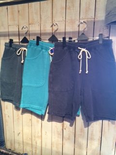 2015/04/22 Category : HONKEYTONK そろそろですか?スェットショーツをチェック! ホンキートンク店 これから急速に気になってくるのがショートパンツ。 去年は、チノ素材等、「布モノ」が当たり前に並んでおりましたが、 ホンキートンク店のアメカジ男子の方々からは、 「ホントに暑い時のショーパンは、もうラクなのがいい。オシャレとはべつにラクなので良いものが欲しい」という声もありましたので、 USAのヴィンテージスェット リプロダクトメーカーの、 GOOD ON のスェットのショートパンツを投入しました! こちらです! ヘビーウエイト スェットショーツ ¥7、600+TAX カラーは、ネイビー、ターコイズ、スレート(グレーがかったブルー) 触っていただければわかる、ガッチリと目の詰まったスェット生地にユースド加工、 外で穿くのにふさわしいスェットショーツです。 こちらは、パイル地のショーツ。 ¥6、400+TAX リラックス感全開の素材です。 カラーは、ネイビーとオリーブ。 気持ちの良い履き心地を約束! そして、こちらはミックスグレーのスェットショーツ ¥7、600+TAX 上記のスェット地よりもソフトな編みになっております。 かなりのリラックス感ですね♪ そしてスペシャルアイテムがこちら。 カモフラージュプリント。 ¥9、200+TAX タイガーカモとウッドランドカモの2種類 こちらはまたまたシッカリと目の詰まったスェット地にカモプリント! 無地のTシャツとコレだけでもスタイルが完成しますね。 おしゃれはガマン、といえども、どうにも耐え難い暑さに対しては、スマートなモノ選びで対処、ってのがオトナの選択。 また、スェットショーツといえども、外出につかうのであれば、あまり安物でも、、、。 生地や縫製のしっかりしていて長持ちする、かつ、ちゃんと人前にでて自信を持てるモノを着用したいものです。 ワタクシ中島、足が枯れ枝の様に細くて、試着画像をお見せ出来ないのが残念でございますが、 このショーツ、暑がりさんにはぜひ愛用品の加えていただきたいと思います! ホンキートンク店 ナカジマでした!
