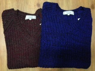 2014/11/06 Category : BABACOOL BA: KNIT!!! KNIT!!! KNIT!!!〜その3〜 BABACOOL店、ニット大量入荷につきご紹介! ミックスヘザー Vネックニット / ¥6,900+TAX SIZE - 1(M) / 2(L) ヘザー風のミックス織りによる色合いが雰囲気のあるVネックニット。 程良い広さのVゾーンで、シャツやカットソー等のインナーと合わせがいがあります。 見た目よりもややタイトな印象。 ウエストや袖周りがシェイプされ、着てみるとスタイリッシュ。 ジャケット等のインナーにしても着膨れしにくく、使いやすいです♪ ケーブル編み ボーダークルーニット / ¥9,800+TAX SIZE - 1(M) / 2(L) 今回のニットシリーズ唯一のWOOL100%。 やはりWOOL100%となると風合いが違いますね。非常にトラディショナルな雰囲気です。 JOHNのシャツやスカーフとの相性がとてもよろしい。 ケーブル編みでボーダーまでしっかり編み込んでおり、このクオリティーでこの価格はリーズナブルかと。 ウール特有の柔らかな暖かさはけっこう病みつきになります♪ いよいよ冬の気候に近づいて参りました。 アウターはもちろんですが、インナーにこういったニットが1枚あるだけで暖かさが全然違います! 特に今回入荷のニットはインナーにしやすい中厚のモノが多く、比較的リーズナブルなので非常に重宝します♪ 是非とも試してみて下さい!!