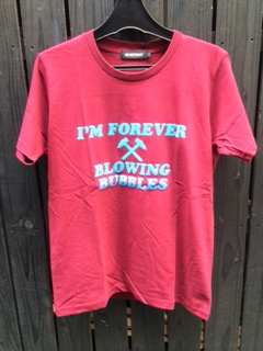 2014/06/10 Category : お知らせ Tシャツ紹介リレー 新商品を紹介するばかりでもなんなので、各店取扱いのTシャツについていろいろ。 まずはコレです。 ¥4600+TAX ホンキートンク店取り扱いのブランド、スタジオダルチザンのTシャツは、 ファンにはお馴染みのブタちゃんがテキサスロングボーンに! テキサスのロングホーンといえばスタンハンセン、というのは常識なので コーディネートは、左腕に黒のロングリストバンドでキマリです。 僕の場合、黄金の左腕を相手の首にぶつけて、 自分の腕をへし折るという必殺技を持っていおります♪ おふざけはここまで お次はババクール店 Telovin(Good Onボディ) ¥6800+TAX こんな時代だから War is not healehy...... ハンセンというつながり? 所々、指を使って色付けする。 まさにハンドメイドステンシルプリントは、 同じ表情は二つと存在しません。 デザインソースは、60年代後半に、反戦を願うメッセージを込めた ローレンシュナイダーという方によるもの。 コーディネイトは、 軍服平和利用でミニタリーリメイクパッチワークショーツ+サングラス+長髪で お次はリキッド店 NEVER TRUST BLOWING BUBBLES Tee ¥4000+TAX I'M FOREVER BLOWING BUBBLES.とは イングランドプレミアリーグ(イングランドのプロサッカー1部リーグ)に所属する ウエストハムユナイテッドFCのサポーターが歌っている応援歌です!! ウエストハムユナイテッドは東ロンドンの下町地域に本拠を構え、 サポーター層は純労働者階級が多く、 スキンヘッズたちも愛したチームの1つ。 労働者上がりのチームってこともあり、ハンマーがチームの象徴。 そのため、別名HAMMERS(ハマーズ)とも呼ばれています。 かつては、Dr.Martensがメインスポンサーになっていたこともあります。 コーディネイトはもちろんスタジアムレベルズ!! 何気なく着てしまうTシャツのプリント、意味を知ったり 妄想を広げたりするとたのしいですね。 閑話休題でした!