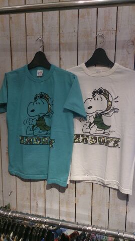 2014/04/22 Category : HONKEYTONK BUZZ RICKSON'S × SNOOPY コラボTシャツ ホンキートンク店に、キャラクター物のTシャツが入っております! そのキャラクターはなんと、、、スヌーピー!! あの、バズリクソンズとコラボレーションしています。 スヌーピーのヴィンテージ図案をもとに製作されたTシャツです♪ では、ご紹介していきたいと思います。 SNOOPY with M-65 SNOOPY with A-2 Flying SNOOPY with A-2 SNOOPY with A-2 CHARLIY BROWN with A-2 種類は5つ、サイズはS,M,Lが揃っています。 S,Mサイズは女性の方でもいけると思います♪ 店頭にて、是非チェックしてみて下さい!