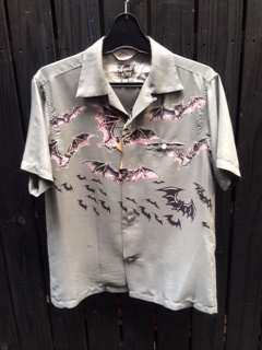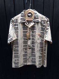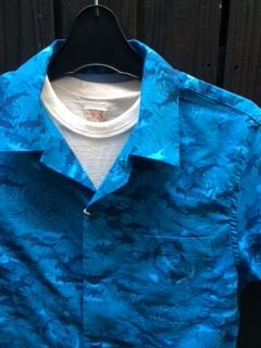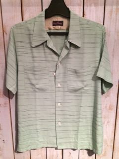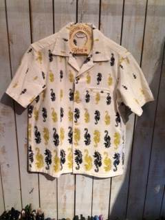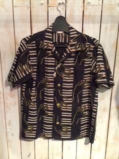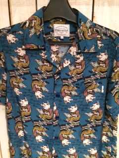 2014/04/23 Category : LIQUID LQ:オープンカラーシャツ オープンカラーシャツとは、衿の台がなく、平らな衿で、第一ボタンを開けて着るタイプの衿。主に夏場に愛用される。 開放的でラフな雰囲気を味わえるし、1950年代に流行した事から50'Sなスタイルには欠かせないモデル。 ハワイアンシャツでもボーリングシャツでも、このタイプの衿はならば、それはまず、オープンカラーシャツなのです。 今ではジャケットから衿をのぞかせていたオープンカラーシャツ、 夏場にはいよいよ一枚勝負の主役となる訳です。 まずはレアヴィンテージのレプリカ物から、 Star Of HOLLYWOOD Killer Bats By Vince Ray ¥18.000+TAX レーヨン100% まさにBADな図柄。 由来、詳細は店頭のSUN SURFのカタログにて。 次はDry Bonesから珍柄 海洋柄 ¥12.800+TAX よーく目を凝らして見てください。 シャークやマンタが!! 特にシュモクザメに注目!! 柄合わせも緻密です。 同じくDry Bonesから50'sな ネップヤーンオープンシャツ ¥15.800+TAX レーヨン100% テロテロの上質レーヨン。 カスリ柄がクールです。 後で色やサイズも増やそうと思っていたらDry Bonesで全て完売! 弊社にはこの色のSサイズ一枚のみ。 続いて、またまたStar Of HOLLYWOODのコレ。 Piano ¥14.000+TAX 綿100% JAZZ系でしょうか。 ピアノとそれを弾く女性の手という図案。 リキッド店に最もふさわしい柄かもしれないです。カッコイイ!! まだ早い、かもしれませんが、少量入荷故、お早めにどうぞ。