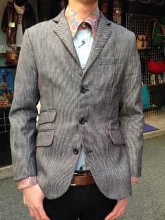 2014/04/12 Category : BABACOOL BA : COOLSCATより、王道ストライプセットアップ! COOLSCATよりストライプセットアップが怒涛の入荷! なんと全5パターン!今回かなり気合入ってます! STRIPE JACKET/¥9,200+税 STRIPE PANTS/¥6,200+税 S/M/Lサイズ展開 上はピッチ細め、下はピッチ太めのレジメンタルストライプです。 ジャケットは3ボタン、サイドベンツ、チェンジポケット付のCOOLSCAT定番モデル。 パンツは細身で細かく縫い合わせたセンタープレス付。 この王道モッズスーツにこのストライプ、もはや多くを語る必要は無いでしょう。 更に今回はスーツ地ではなく綿素材なので、単体でも合わせ易いモデルになっています! 上下別料金なのでジャケットだけ、パンツだけの購入はもちろん、上下別サイズでの購入も可能! セットアップで着用。 シンプルにシャツ一枚でバシっとキマります。 綿素材ということであえてネクタイはせず、シャツのボタンも開けてラフに着こなしてもGOOD。 ジャケット活用。 やはり綿素材なので単体でも違和感なく使えます。チノやスラックスはもちろん、デニム等にも相性がいいです。 普段は単体で、気合の入ったときはセットで、なんていう使い方も! 更にCOOLSCATといえば注目すべきはこの価格!! 型は当時のままに、生地や縫製工場を安くする事でこの価格にまで抑えているとのこと。 上下セットでも税込¥16,632…安すぎます! とはいえ型はCOOLSCAT当初からのコダワリのシルエットを用いているためこの価格には見えないディティールの良さ! まさにHigh Quality&Low Price!! セカンドスーツとしてはもちろん、セットアップになかなか手が出ない方への第一歩としてもオススメです! この春はバシっとキメてやりましょう!!