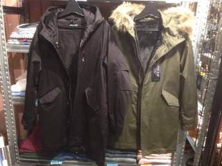 2014/02/16 Category : お知らせ モッズパーカー裏地ハズし活用術!! 暦の上では春ですがまだまだ寒い! 特に三月から四月にかけては風が厄介な季節。 そこでCOOL SCATのモッズパーカーが大活躍するわけです!! その活用術をご紹介します♪ オリーブが裏地&ファー付きのもので、ブラックが外した状態です。 裏地なしだとこんな感じになります。 裏地やファーを付ける程寒くはないけど、風が冷たいなんてとき 風を通さないモッズパーカーを上から着るだけで暖かい!! 風が吹けば、もちろんホコリも舞い上がります。 ジャケットやニットが汚れてしまうなんてことも... そんなホコリから守ってくれます。 そして、裏地をとることによってその分重ね着しやすくなります。 裏地ならSサイズも着やすい! モッズパーカーには珍しいこのサイズ。 スッキリみえてカッコイイ! シャツの上等に着るといい感じに♪ 重ね着派という方にはLサイズがオススメ。 裏地を取っている分、ゴワつきが少なくとても動きやすいです。 ガタイの良い方も安心して着られるサイズ♪ スーツやジャケットの上から期待という方には丁度いいサイズです! 合わせてこんなものもございます! ヘビーウィンタージャケット ¥19,740 実際は無地ですが、画像はお店のワッペンやバッジをつけたナベモデル。 シンプルだからカスタムしがいがあるんです♪ こちらもモッズパーカーろ同じくボア裏地が取り外せるタイプ。 モッズパーカーよりも武骨で男っぽいデザイン。 こちらもオススメです! 春先でもまだまだ出番のあるモッズパーカー。 これからも大活躍間違いなしです!!