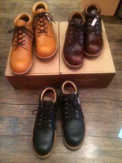 2014/01/19 Category : HONKEYTONK HT:年の初めに靴のリニューアル♪ こんにちは、ホンキートンクスタッフのふーみんです。 年も明けて新しい年が始まりました! 何かといろいろリニューアルするものも多いと思います。 大切なのは、靴のリニューアルだと思います♪ ホンキートンクのお客様は、一足履きツブシタイプの方も多いようです(笑)ので、 丈夫で長持ち、履き回しが効き、毎日履いても飽きのこないモノがイイですよね? いまいちど、ホンキートンク店の人気トップの靴を御紹介します。 SLOW WEAR LION オイルドレザー クラシックオックスフォードワークブーツ ¥27,090 クラシカルな雰囲気のコルクソールを使用しており、 クッションの効いた履き心地に♪ 何にでも合う万能選手! SLOW WEAR LION オイルドレザープレーンMIDブーツ ¥20,790 厚いオイルドレザーを縫い上げ、クレープソール仕様のブーツ。 白ソールの効果でちょっと品もあったりします。 日本人の足型に合わせた、日本人によって作られた、日本人のためのブーツです! ちょっと御予算に余裕のある方は、 LONE WOLF BOOTS メールマン ¥44,940 外羽根のプレーントゥにビブラムのウェッジソールを取り付けた、 いわゆるポストマンの短靴。ビブラム#2021のソールを使用しています。 非常に軽量で、抜群の履き心地!!ジーンズからスーツまで合わせられます♪ ここぞという時の一張羅にもイイですね。 みなさん、シューケアなどは行っているでしょうか? シューケアをすると、靴の雰囲気が変わったり愛着も湧いてくると思います。 シューケア用品各種 ここでふーみん自己流シューケア方法! 用意するもの ・ミンクオイル ・柔らかい毛のついたブラシ(馬の毛ブラシ) ・目の細かい布切れ(数枚) まずはじめに、目の細かい布切れやブラシなどで靴についたホコリや汚れなどを落とします。 次に、ミンクオイルを塗り込みます。僕の場合は直接手に付けて靴全体にオイルが馴染むように 塗り込みます。それから半日から1日置いてから、キレイな布で靴の表面に残ったオイルを拭き取ります。 これだけです♪ 何故布ではなく直接手に付けるかというと、オイルが手の熱で溶けるので革にオイルが染み込みやすくなるからです。 やはり手入れをすると足の馴染みも良くなり、深みのある光沢も出て、更に愛着も増すと思います。 作業そのものも意外に楽しいですし、磨かれたあとの靴の輝きを見ると、なんだか心が満たされちゃいます♪ ワークブーツ系は特に、ヘビーローテーションするものですから、楽しみも兼ねて、ぜひメンテナンスをオススメします。 以上ホンキートンクふーみんでした♪