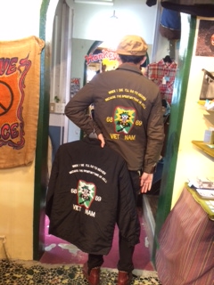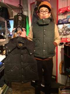 2013/12/14 Category : HONKEYTONK ホンキートンク店、スロウウエアのブーツ&新作アウターご紹介♪ ホンキートンク店に新しいアウター、そして、長い間品切れしていたSLOW WEAR LIONのワークブーツが入荷しました。 バイカーテイストのストリートブランド、HIGHESTENDより、ストリート感覚溢れるアウター4連発にて登場! まずは、ここのところ各ブランドからもチラホラ出ているA2デッキジャケット。 ¥16、590 ブラック、ネイビー。M L ホンモノは裏ボアですが、コレは軽量なシンサレートという高機能な中綿仕様。 袖口はリブ付きなので、風が入りません。街乗り程度ならバイクでも対応出来ます。 男臭いデザインです! お次は、ベトナムジャンパー。 ¥15、540 ブラック、ブラウン。M L コダワリ系ヴィンテージレプリカ物よりも敢えてチープな雰囲気に。 作業着のカッコよさです。こういうのって、リアルでいいですね。 バックの刺繍が良い。 薄めの中綿仕様なので、肌寒い春先まで着れます。 サイズ感はけっこうタイトですね。 ホントに作業着みたいに着ていただいてもいいと思います。 お次は、Pコート。 ブラック、オリーブグリーン。M L ¥18、690 コレ、シルエットがめちゃくちゃカッコイイのです。 ウエストのタイトなフィット感がサイコーなのです! 裏はこちらもシンサレートの高機能中綿で、とっても暖かい。 男っぽいPコートを好まれる方は、ぜひ一度ご覧下さい! 最後に、ベストです。 ¥9、345 こちらはもうグリーンのMが一着しか無くなってしまいました。 ミックス感のあるニット調の生地にフンワリとした綿入り。 フードはスナップボタンで脱着出来ます。 防寒補助アイテムとしてかなり使えるアイテムです。 お値段もリーズナブル。あと一枚ですよ! さて、リキッド店の主力がDrマーチンならば、ホンキートンク店の主力は文句なしにスローウエアのワークブーツ。 この2種類が、サイズがビッチリと揃いました! 上段→オイルドレザーMIDブーツ ¥27、090 下段→クラシックオックスフフォード ¥27、090 ワークブーツとしては軽量で履き易く、職人による国内生産としてはかなりリーズナブルなプライス。 オーソドックスなデザインは、アメカジは言うまでもなく、異ジャンルとのミックスも容易です! リキッド店やババクール店ご贔屓の方も、一度ご覧いただきたい! ただし! ショップからの受注生産しかしないので、欠品すると次の入荷までが少々長い。 サイズ揃っているうちに試着だけでも是非! 以上、ホンキートンク店入荷情報でした!