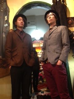 2013/11/12 Category : BABACOOL BA: 高機能アウター&MODなジャケットを紹介! ちょっと変わり種の高機能アイテム&COOLSCATより、MODなジャケットの紹介! ツイード柄プリントフリースパーカー/¥12,600 見た目はツイード、生地はフリースというちょっと変わったパーカー。 かっちりした見た目とは裏腹に、柔らかく、裏起毛のフリース生地なので暖かい&着心地バツグン! 襟のボタンを締めれば防寒性もバッチリ! 襟&フードは取り外し可能なので、着こなしの幅も広がりそう。 僕が着用のホームスパン柄は手織りの風合いをしっかりと再現しており、かなり味わい深いです。 ジップアップフリースパーカー/¥9,345 続いてもフリースアイテム! こちらはさらに機能派&シンプル。やはり生地の暖かさや柔らかい着心地は最高です。 冬のインナーとして重宝しそう。 赤は黒い糸が織り込んであり、味わいのある色合いです。 カモ切り替えダウンジャケット/¥29,400 続きまして、真冬はコレ一枚!なダウンジャケット。 前面のカモフラ柄と袖の切り替えがカッコイイ! 見た目だけでなく、ダウン80%、フェザー20%配合でしっかり暖かい! さらにライダースのように袖口がギュッと締まったり、リブの高襟が付いていたりと、防寒機能にぬかりなし! お値段以上のダウンジャケットです。 COOLSCAT モッズジャケット/¥12,390 最後はCOOLSCATより、超MODな3ボタンジャケット! 衿裏切り替えのツイード生地で、冬仕様のジャケットです。 知る人ぞ知る、文句なしのカッコよさ…!! 気になった方は要チェックです! 最後に、先ほどからちょいちょい画像に映る彼の紹介! 先週よりBABACOOLに現れたニューフェイス! 笑顔がステキなヤマジュンです!先週より、アルバイトとして働いております。 身長180cm超えが二人になり、BABACOOLがさらに奇妙な空間に…笑 ぜひともイジってやってください!!よろしくお願い致します(^O^)/