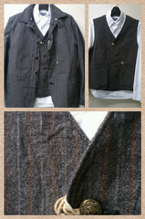 衿のライン、袖口のリブ、ストライプの裏地、シルエット、グレイッシュなネイビーのウール生地、どれをとっても非の打ちどころなし!