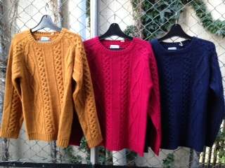 2013/11/01 Category : BABACOOL BA:カラフル&ポップなニット、スウェットアイテム! 今回はニットやスウェットがたくさん入ってきました! リブ編みニットセーター/¥6,090 去年も大好評だったセーターが今年も入荷! 今年は新色登場で、ドーンと6色展開! シンプルで合わせやすい万能セーター。リーズナブルなので、多色買いなんてのも! お気に入りの色を探してみて下さい! フィッシャーマンニットセーター/¥9,345 こちらはケーブル編みセーター。 編み模様が際立つ主役級セーターです! 無地シャツとシンプルに合わせるのがオススメ。 ワッフルニットセーター/¥7,245 ざっくりとした編みのセーターです。 ユルめのシルエットでラグラン仕様なのでゆったり着ることができます。 若干の透け感があるので、インナーとの合わせが楽しめそう! ハンドニットマフラー/¥5,145 マフラーも入ってきました! 手編み独特の風合いがステキです。 プレゼントにもオススメ! 7分袖スウェットカットソー/¥6,930 80'sなデザインのスウェットです! BABACOOLらしいインパクトのあるプリント♪ 一枚でも、インナーに使っても映える大きめプリントがGood。 クレストモヘアニット/¥8,925 最後はウォッチドッグ! 今回もウォッチドッグらしいキレたデザインのプリント! 色合いも鮮やかでインナーでも映えます。 秋口から真冬まで使えるニット、今年はビビッドなカラーが多く、遊びがいがありそうなモノばかり!とりあえず一枚は持っておいて損はないと思います!