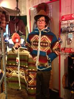 2013/10/23 Category : HONKEYTONK HT:ほっこりアウターのご紹介 昼間からニットを着ていても過ごせる気温になってきましたね♪ ・・・なのでアウターを見たいテンションが徐々に上がってきているのでは!?(^_^) 色鮮やかなアウターがチラホラ入荷してきたのでご紹介いたしますよ~♪ Mucho Bueno 19950YEN エクアドルフードジャケット! 毛足のある質感の良いエクアドル産のブランケットに柔らかなシープボアを貼った、ボリューム感たっぷりのジャケット! 軽い着心地がとってもうれしい~! そして、madeinJAPAN!!!この作りで・・・2万円をきるというスペシャルプライス! カラーはこの2色! この、フカフカ感!伝わるでしょうか~(*´∀`*) 絶妙な色使いで普段から着なれない方にもハマりやすくなっております♪ お次は、JOHN BULL 25200YEN ハンドニットジャケット! 昨年、一瞬で完売してしまった幻のニットジャケット!今年も登場してくれました! ざっくりとしてるが程よくフィットしてくれてスッキリと見えるシルエット! 重そうで全く重くない! こちらが色違いで全2色! グリーンブルーとオレンジ♪ ぜひ、ご試着でこの暖かさ&軽さを実感してみて下さい! 次回は・・・男くさめなアイテムをご紹介いたします( ´ ▽ ` )