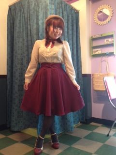 2013/08/15 Category : BABACOOLⅡ Fi.n.t 秋物ノベルティフェア!! 秋冬のFi.n.tのテーマは「Young at Heart」というなんと日本にはDVDにもなっていない、字幕、吹き替えとしてあるものもないという「レア」な映画なんです。 若手音楽家と美しい3姉妹の三角関係を描いた1954年の恋愛ミュージカル映画! 若草物語やサウンド オブ ミュージックの世界観といいますか、ハートウォーミングなレトロファッション目白押し! THE クラシカルでカワイイです!! そんなFi.n.tの秋物入荷に伴いまして、ノベルティフェアを開催します!8月17日からです! 今回、ミュージカル映画ということで音符モチーフのヘアゴムです! 黒、白、ワインの3色!8千円以上お買い上げのお客様にプレゼントいたします。 同時にカタログも配布開始します!少数限定なのでお早めに! では早速、秋物をご紹介! ダブル襟がかわいいストライプブラウス。花の抜き&スカラップと凝ってます。 リボンは取り外し可! 6930円です。 お次はハートがカワイイカーディガン。刺繍がキュート!! 色的に合わせやすいのでおすすめです! 6930円! とたくさん他にも入荷してます。 楽しくなってきたので試着してみました笑 小花柄ベルト付ワンピース。 ベージュもあります。形が上品で本当に綺麗です!襟の肩ともかわいいんです~♪ 9870円! 足元はリボンフラットシューズ!楽チンカワイイです!リボンが動くのでバックリボンにしてもカワイイです! 3990円! 配色タイ付ブラウスにサーキュラースカートで合わせてみました。 クラシカルでかわいいです。足元はハートモチーフパンプスで! ワインで合わせてみました!髪まで笑 ブラウスは6930円、スカートは7980円、パンプスは6930円です!! ブルーグリーンもあります♪ クラシカルで上品でかわいい今季のFi.n.t!秋カラー早く着たい~!!! 可愛いので是非、新作を見に来てください♪